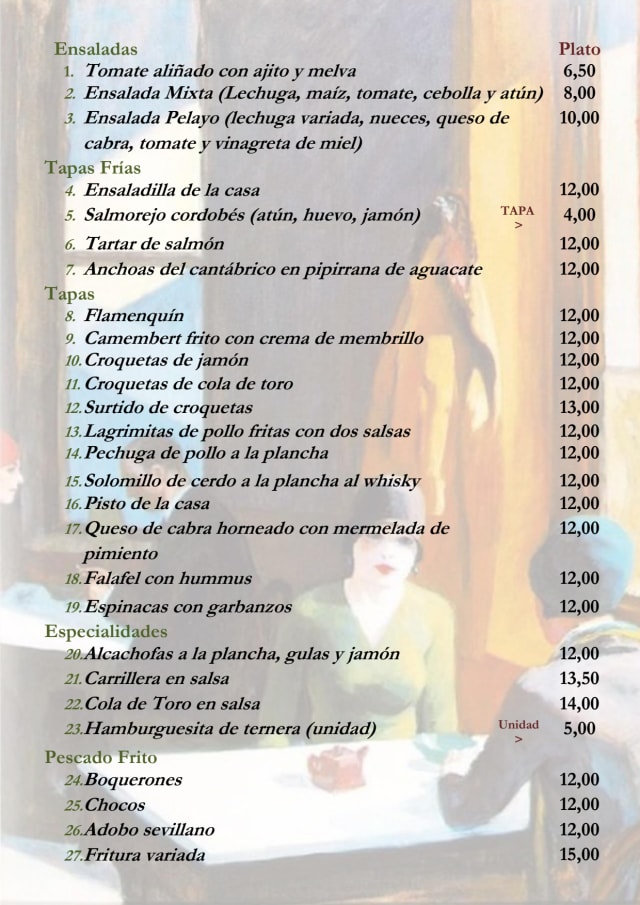 4.5/10We went here on our first night in Seville. Safe to say it was disappointing. Croquettes were very nice however spinach with chickpeas were just a green tasteless mess. We waited so long for our pork cheeks we had actually forgotten we ordered them & had asked for the bill. Overall, a disappointing visit.