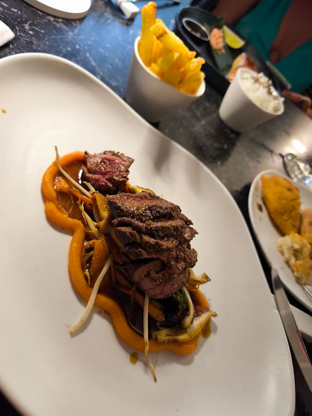 10/10Very surprising fusion cuisine. Beautiful presentation, high quality, sensational taste - very nice and friendly service, best cocktails and their Sushi and fresh Wasabi…!!! Wow! Not expected that quality. The location like an oasis! Go there, eben in San Juan! We were there twice during our stay. You will will Not get that experience for that price anywhere else - i‘m sure.