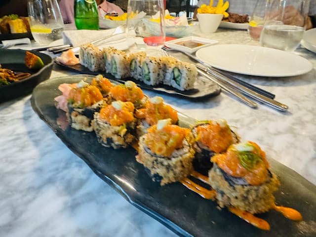 Good afternoon Martina. Thank you very much for your wonderful review! We are very pleased to know that you enjoyed our fusion of flavors and that our presentation and quality exceeded your expectations. We take pride in offering friendly service and exceptional cocktails. We are especially glad you appreciated our sushi and fresh wasabi. We hope to see you again soon in our little oasis in San Juan!