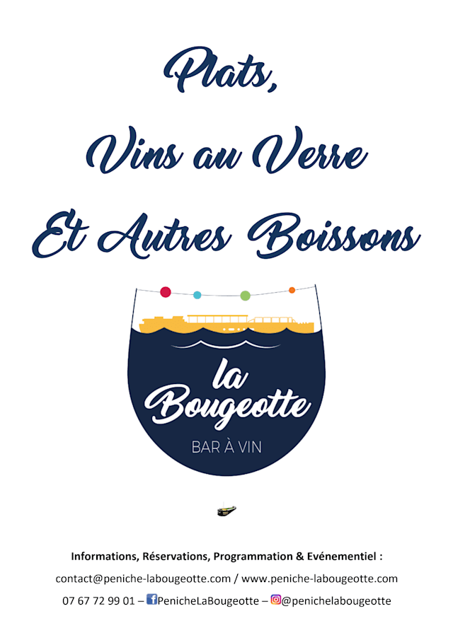Il s'agit d'un bateau cave/bar à vin qui navigue entre Paris et Dijon. L'idée est de charger de bons produits au fil des voies navigables pour vous les proposer à la dégustation à bord lorsqu'elle est à quai à Paris (d'octobre à mai)