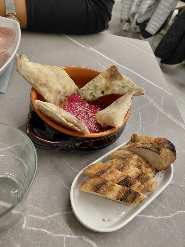 Crema di barbabietola e ceci (senza lattosio) accompagnati da sfogliata artigianale