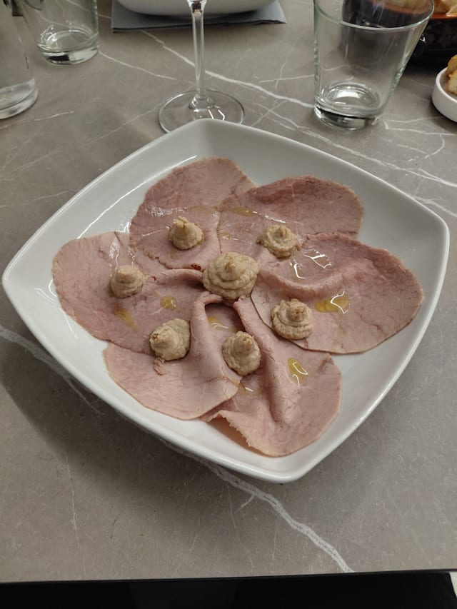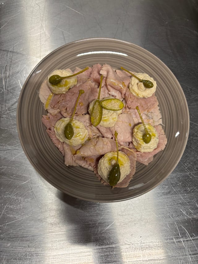 Fettine di vitello cotto a bassa temperatura, servite con la nostra salsa tonnata fatta in casa