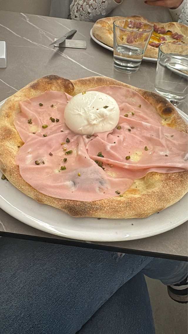 Pistacchio, salsiccia e burrata. Mozzarella fior di latte DOP, burrata pugliese I.G.P in uscita, pistacchio di bronte, salsiccia di fossano, olio di valledolmo