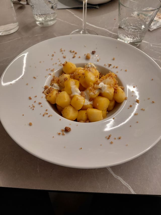 Gnocchi di patate con crema di castelmagno DOP e granella di noci