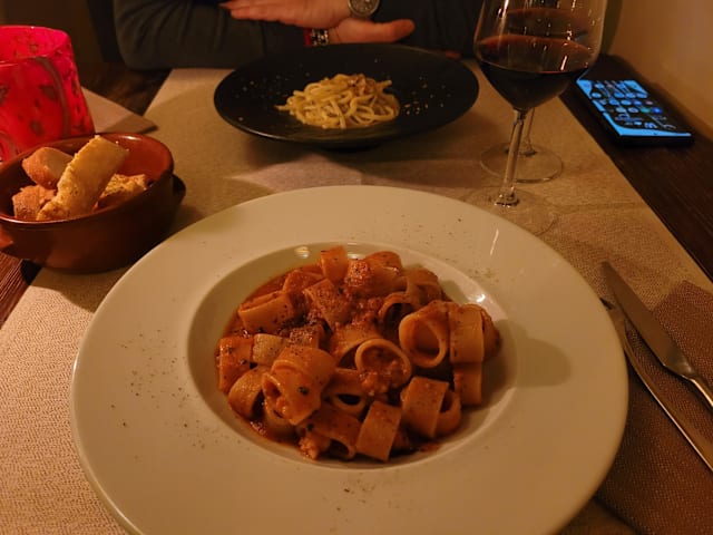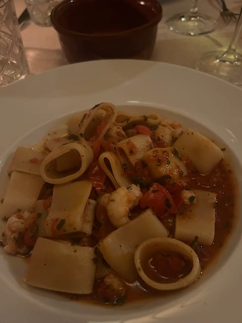 8.5/10+1Really good ambience, candles on the tables and warm colors. Wine by the glass are really tasty. Tried 4. Appetizers: 2 tartare - one tuna and one shrimp - they were really small for the price. The tuna tartare was a little more tasteful than the shrimp one but felt like something was missing. Still ate them all. The first course we’re both two pastas. Good portions and well balanced. Dessert was good. Tortino al cioccolato was well prepared, there was a mango/passion fruit gelato special, which was too sour for our taste. Overall: Good ambience, great wine and interesting food, highly recommended.