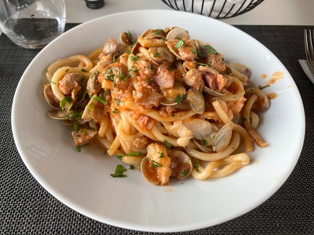 9.5/10Fabulous little restaurant. Warm and welcoming staff. Superb wine and craft beers. Delicious home made breads and the pasta was all home made and fantastic. We had the fish ravioli with prawns and courgette and the tuna pasta. We also had cheesecake with red fruits and semi freddo with cantucci. Both desserts were beautiful. We were very happy with this wonderful little place ????