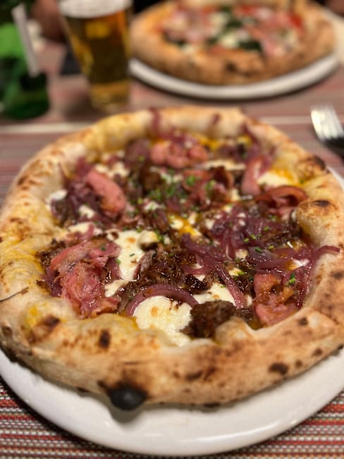7.5/10If you know what a real pizza should be, you could be a bit disappointed: the pizzas we had had been made from frozen dough, not hand-made. Even though both were brought together, one was just lukewarm