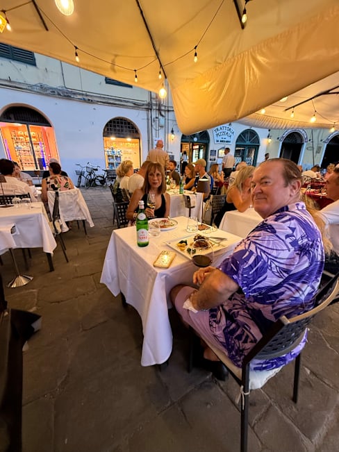 4/10How much you will enjoy eating here depends mainly on where you are seated. The ground floor is light and airy with windows overlooking the Piazza. Then there’s the basement, dark, dingy and noisy thanks to the low ceiling which opens directly onto where they store wine. We were initially shown to a table down there and thanks to a very noisy child made it clear this would not do. Fortunately, they were able to provide us with a table upstairs otherwise we would have walked. We were well dressed and insulted to have been put there. The food was mostly reasonable. My beef fillet, ordered as medium, was severely under-cooked in part. The starter, tagliatelle with white truffle, was good and the dessert at least inexpensive. My first choice of wine was “finished”, the second was available. The total bill came to €140 and we came away feeling rather ho-hum about the experience. I’m afraid Lucca generally has become a victim of its own success which is a pity.