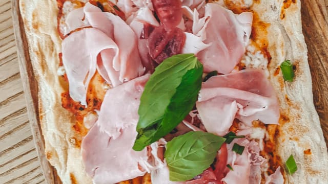 Sauce parmesan truffée maison, jambon blanc truffé, copeaux de parmesan