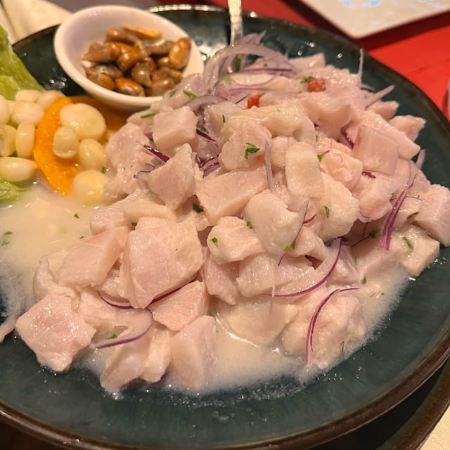 5/10Service was ok and quick. Algarrobina cocktail was amazing, really good!! I'm peruvian, and this is my favorite cocktail, so I know the flavor. On the other hand, food was disappointing. Ceviche had very good taste, but they use a fish that is not appropriate for ceviche (texture and how it reacts to lemon juice). Lomo saltado was exactly the same, good taste (sazón) but bad choice of meat that made the dish not good. Anticucho was the contrary. Meat was good, but the taste it wasn't good, I needed it more flavor. Fish jalea was ok. Picarones (sweet donuts) were delicious!!! Perhaps it was a market bad day but that was our experience. Just for the algarrobina cocktail and picarones that were amazing, I will give the restaurant a second chance another day.