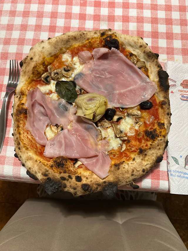 - Pomodoro, fiordilatte, funghi champignon, cotto, carciofi, olive