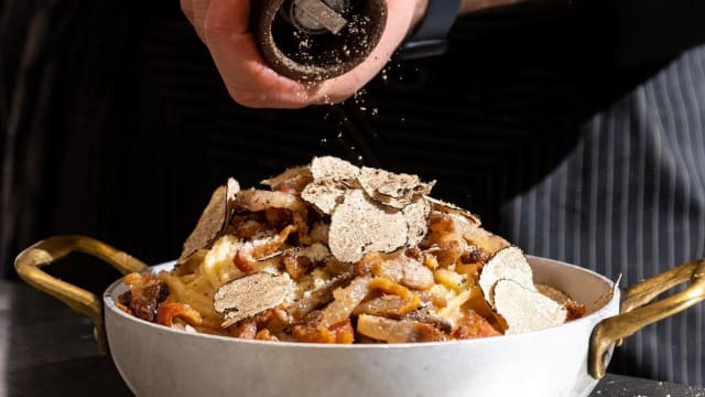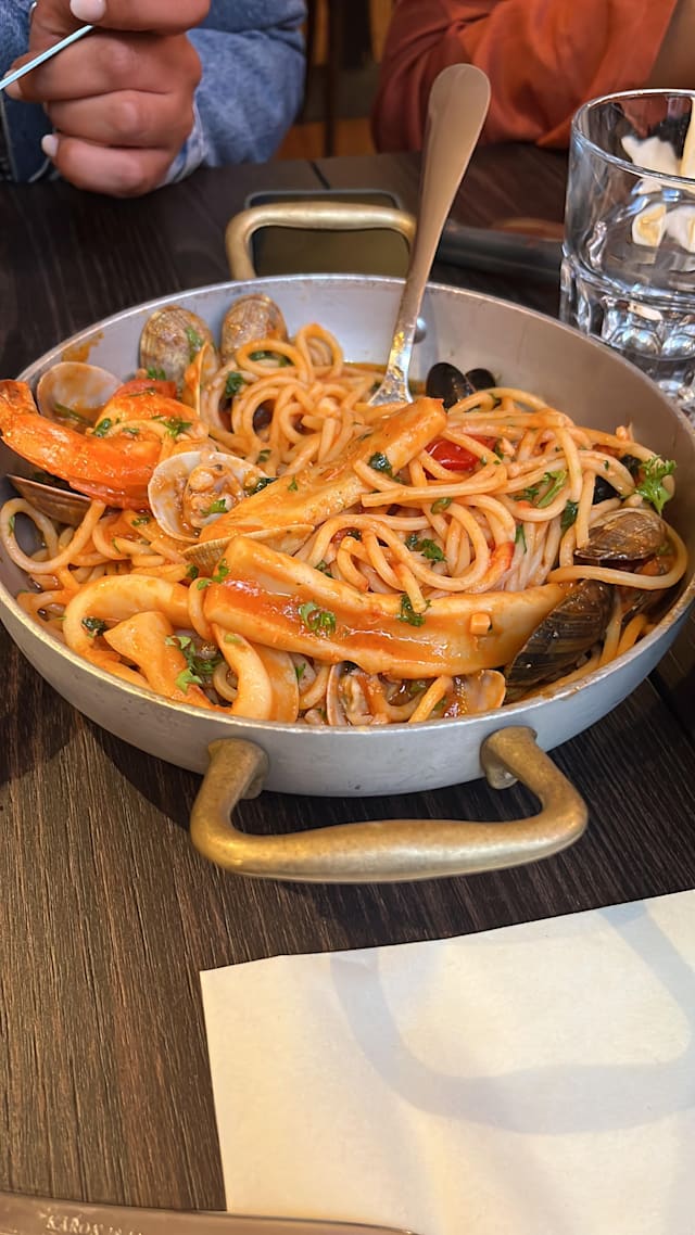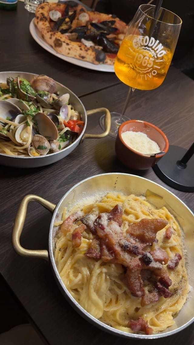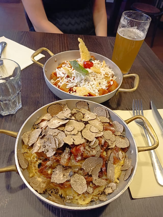 9.5/10Relatively small but nice restaurant. Internally, it is nicely furnished and hosts a typical wood hoven. I ordered a calamarata (a kind of pasta, I didn't try pizza) and I found it very tasty and well cooked. Ingredients seemed fresh and tasty (in particular, parmesan and sausages) also with quite good quantity. Given the quality, I decided to try a dessert (profiteroles) and I didn't regret! The service was kind and quite quick. To close, I found the overall price "right". So, overall, really a good experience. Definitely, to go back to try some other plate!