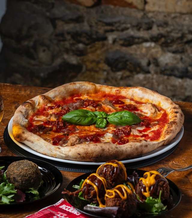 - Pomodoro • fiordilatte • salame • piccante • carciofi • funghi