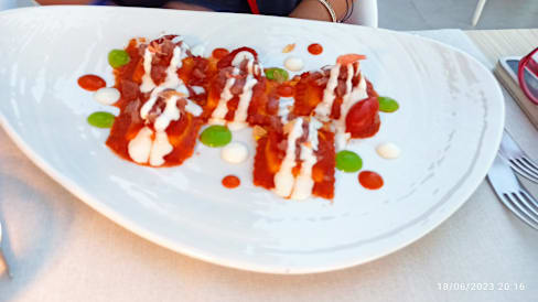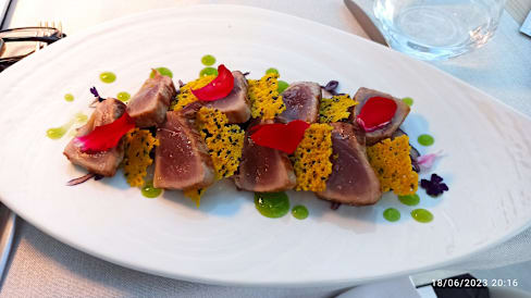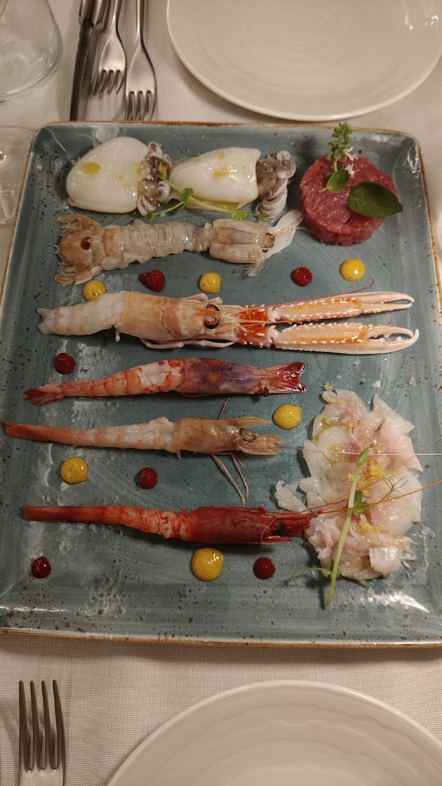 10/10We had already dinner last year in this extraordinary restaurant of Hotel La Perla Saracena. The location Is breathtaking, the service attentive without being intrusive. The menu is even more sophisticated this year and so is the preparation. We were absolutely delighted with every course. Prices are reasonable even without the discount which, of course, makes it even more attractive. I, as a lover of crudo, was more than happy. I will go there again and try other dishes. As a starter: carpaccio of gamberi rossi crudo with Alice cantabrico and stracciatella. The risotto was delicious and so was the pasta carbonara with seafood. We can recommend for small, medium and big appetite (portions are big, by the way). A special thanks to the Chef who has trained an excellent staff. We are looking forward to our next visit