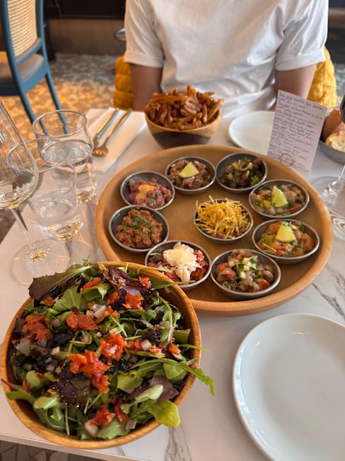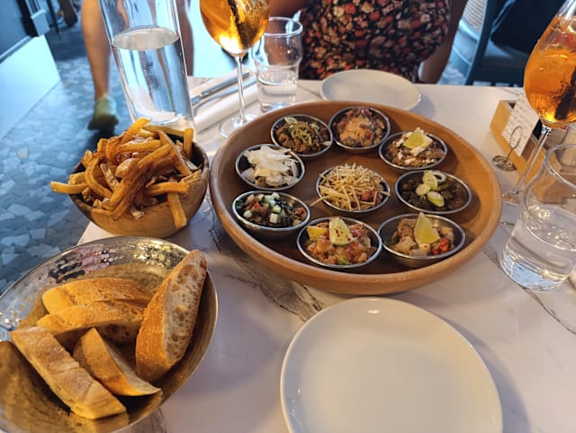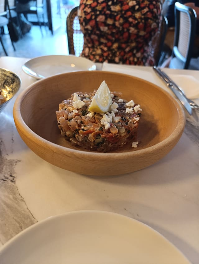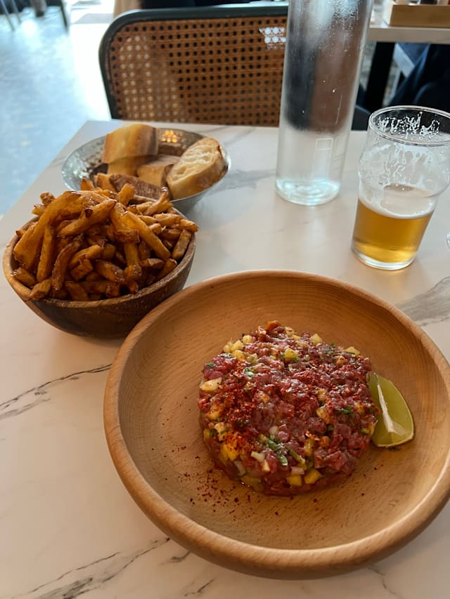 7.5/10We were greeted pleasantly and the server was happy to speak English with us. We ordered the app trio which was ok. The fried cheese was good. The burrata was excellent, the “perfect egg” was interesting but texturally the egg white was not enjoyable. I was impressed by the uniform consistency of the egg white but it detracted from the dish for me (my partner wouldn’t try it). The tartares were okay overall. We probably made the mistake of ordering the full 9 tartare sampler. Ordering 9 iterations of anything will likely result in one or two items being disappointments. That was our experience. The problem was there weren’t two that were outstanding to offset things. The Mexican salmon was probably the best (my partner’s favorite), while I thought the Italian veal and French beef were good and the Thai veal was the most interesting. Despite those highlights none were exceptional. Try it, but order 1 or 2 that have flavor profiles that you are familiar with and like.