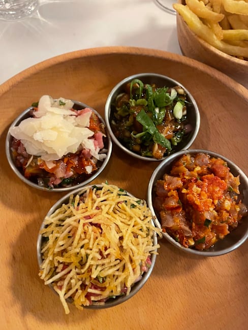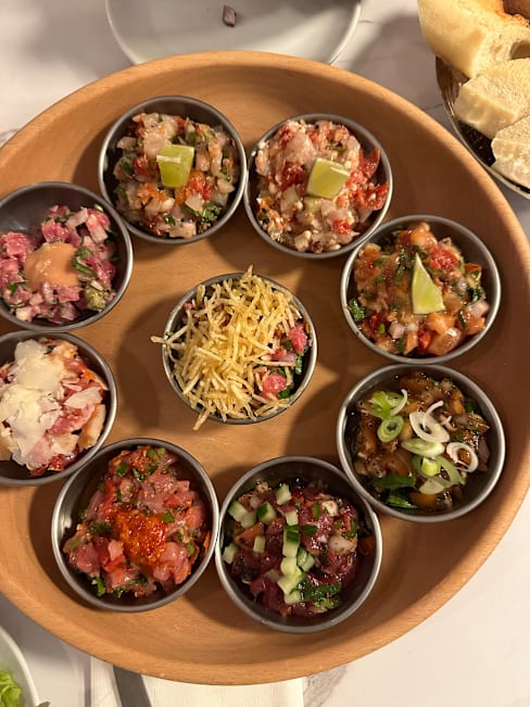 10/10Fantastic ambiance and experience! A must-visit for tartare enthusiasts. We indulged in a menu offering a sampler of various tartares (9 in total), featuring both fish and meat options. Every single one was incredible!