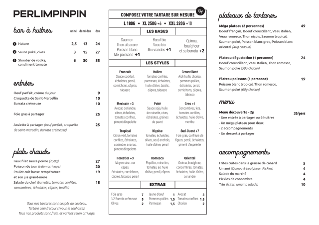9.5/10Likes the options to mix and match your tartare choices. Reasonable number of cooked choices for the kids. Oysters not available unfortunately due to the day prior it being a public holiday.