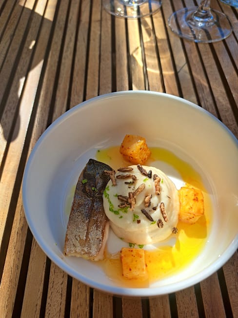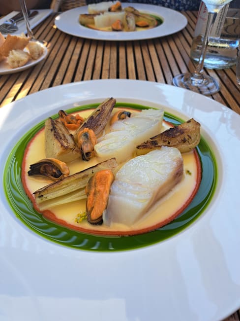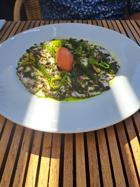 9.5/10When it is not too windy, which it can get at times, it is absolutely wonderful to sit outdoors and watch the locals swimming in perfectly clear water. Catch of the day was turbot and it was super fresh and expertly prepared with minimal intervention, drawing out the natural sweetness of the fish. The food here was good and the service commendable, but the views trump everything