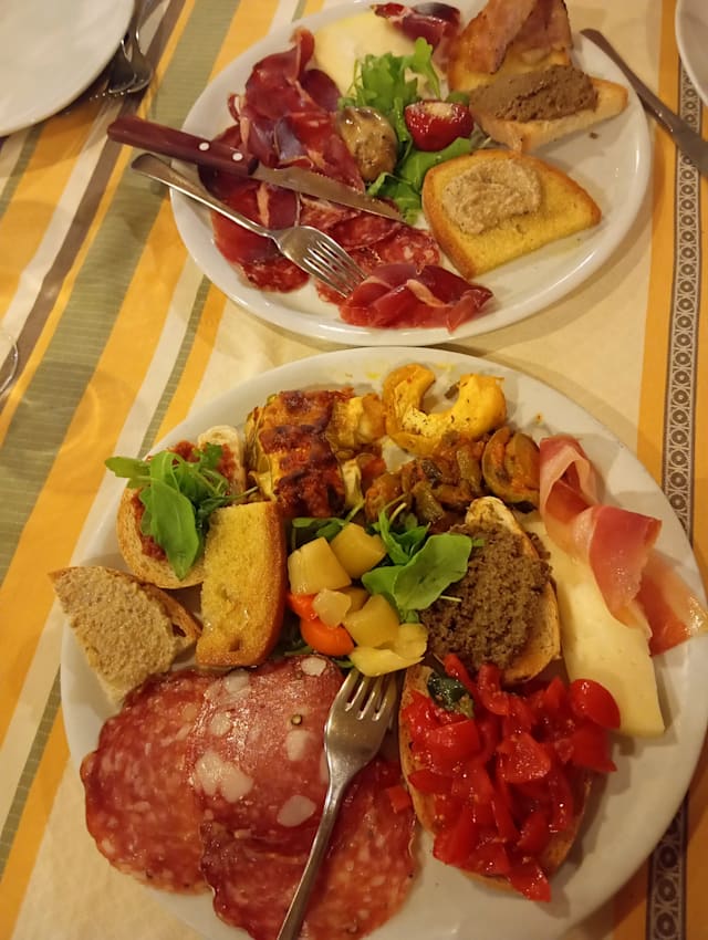 Antipasto Pestello (prosciutto e salame di cinghiale, pecorino toscano, carciofi alla romana e fett'unta con rigatino e salsiccia)