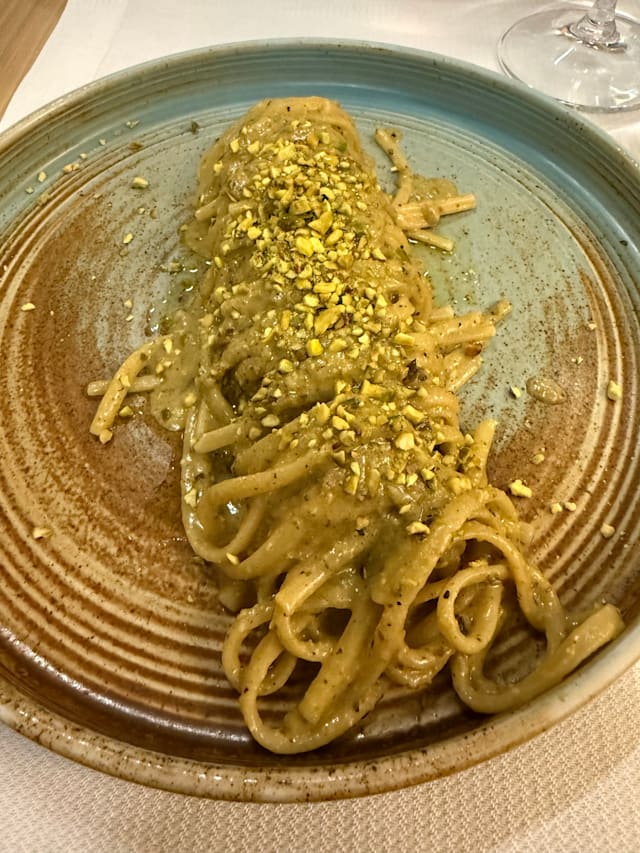 10/10We were very pleasantly surprised by our lunch at Pesto di Pistacchio. We have more often than not been disappointed by meals at vegan restaurants, but the quality of the food and presentation at Pesto di Pistacchio. were high. The tasting menu was full of surprises, including meatless tacos that were deliciously different. Having lived most of my life in California, the bar for a good taco is high and this taco easily cleared it. The other dishes were also tasty, in a good and different way. The service staff were great, although a bit overwhelmed by an unexpectedly large crowd of customers. We will definitely go back