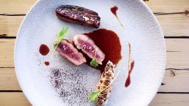 High quality ingredients in well served dishes. Very nice setting and atmosphere directly on the sea. Well distanced tables and quite sounding. Nice ‘80s music.
