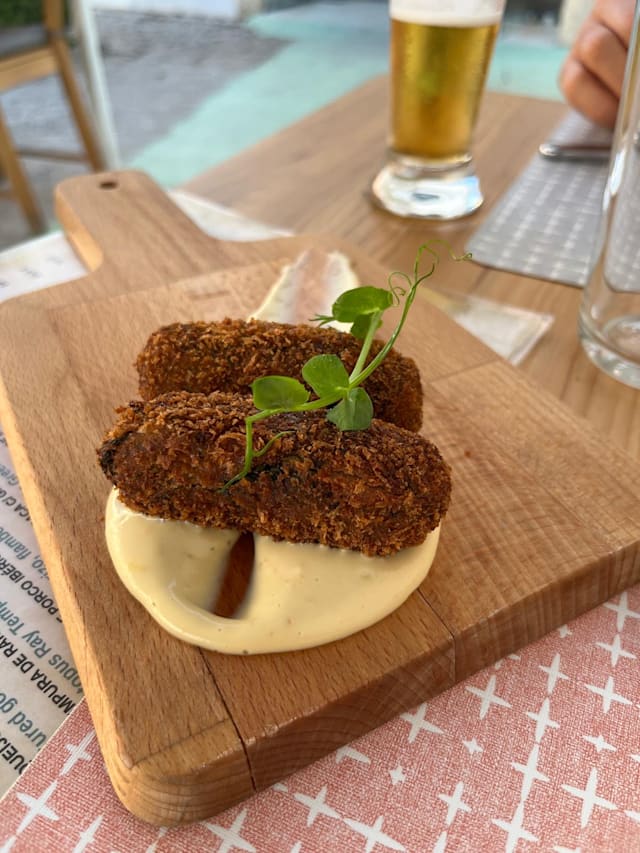7/10Very nice place in the old station Hal. Only a few guests on a Tuesday evening. Overall excellent food. The croquettes were delicious, Tuna and Swordfish as well The desserts also very nice. Service and food recommendation's could/ should be improved. A little drink from the house would make it even better for a next time visit.