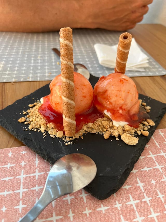 9.5/10Really nice little restaurant in the old railway station. Terrific octopus salad to start a really well cooked swordfish steak and a delicious homemade dessert. Very reasonably priced. Tables inside a little close together but would definitely come again