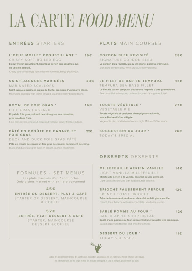 Formule petit Céladon€45 per guest
