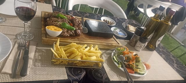 5/10Small portions, very small indeed, for the prices. Cooking at best was trivial. Very slow service, here comes rice, then salad, oh they are bringing the chicken. Two modest portions of chicken and fried fish, one desert, water, olives and bread for €66.00 helps not to return.