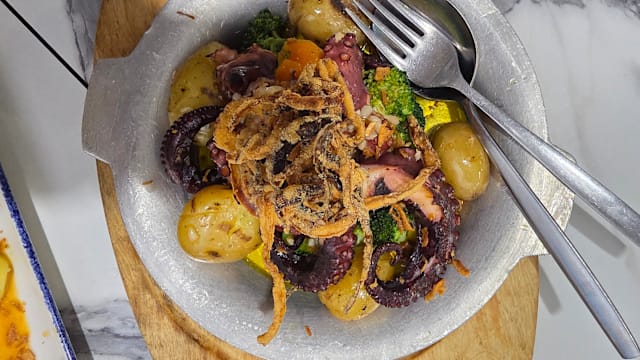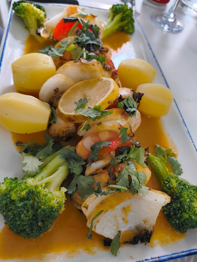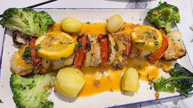 2/10We order 2 soups, one was forgotten. Poor quality of vegetable soup. Then they forgot the main fish dish. They brought it 30 minutes later cold.... I ask to warm it up, they brought it tepid. Warmed fish skewer as horrible, vegetable like glue, tasteless...Even the supposed mineral water was from the tap. To excuse themselves, they gave a small bottle of wine for free but the overall experience is never to come back.