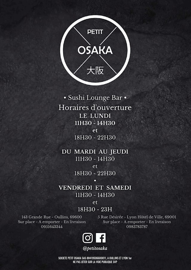 Petit Osaka, Restaurants Japonais, de Sushis situé à Lyon Terreaux et Oullins. Nous nous sommes donnés pour mission de vous faire découvrir des spécialités japonaises de qualité. La "Chimu" (équipe en japonais) du Petit Osaka vous propose des saveurs d'ailleurs afin de faire titiller vos papilles au...