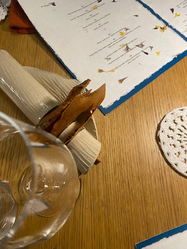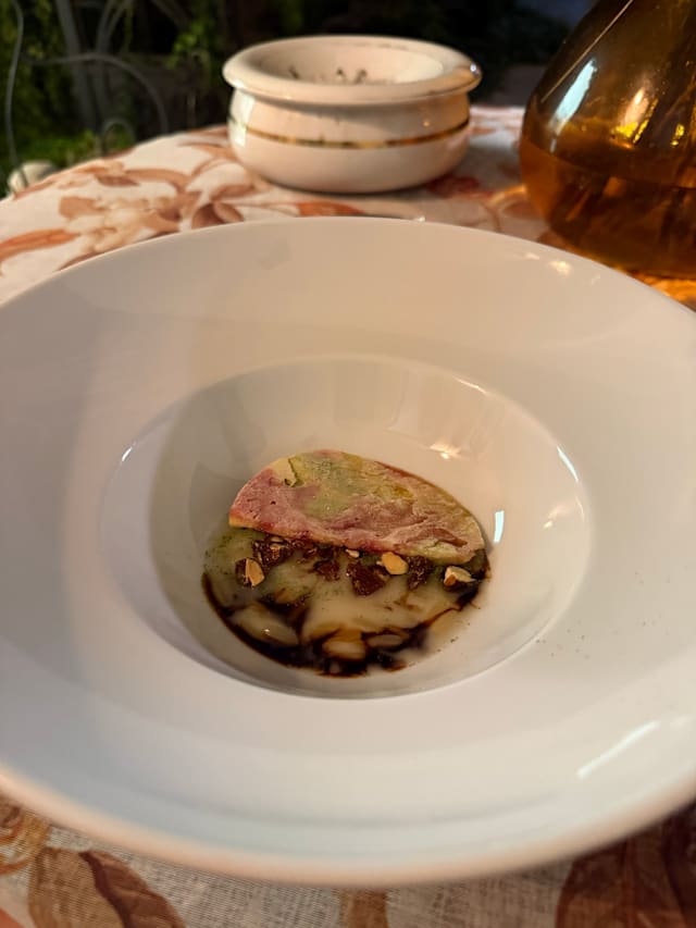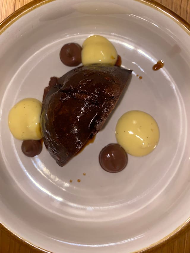 Tortello al grano arso, melanzana, basilico, cioccolato