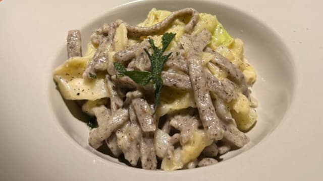 Pizzoccheri artigianali con patate, verze, aglio, parmigiano, bitto e burro