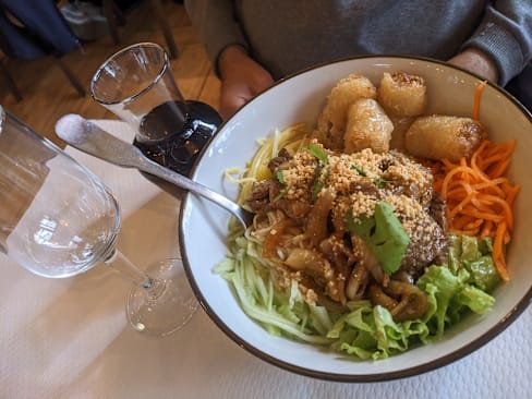 9.5/10The Bun Bo beef, vermicelli rice noodles here is the best in Paris. With good quality of wines, very worth of money.