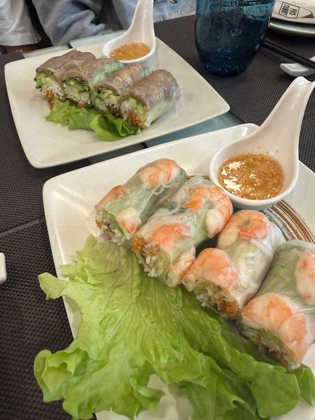- Involtini vietnamiti freschi con gamberi* al vapore, carne di maiale alla griglia, lattuga, menta, spaghetti di riso avvolti in carta di riso