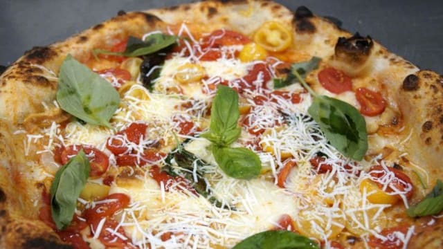 Pomodoro, fior di latte, salsiccia, funghi carciofini, verdure grigliate