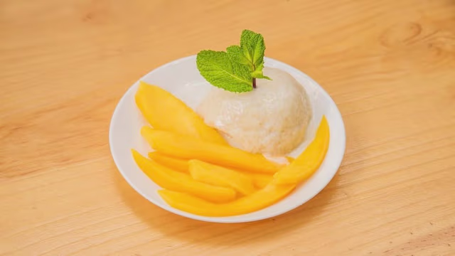 - Mangue fraîche au riz gluant et lait de coco