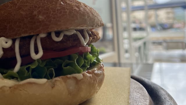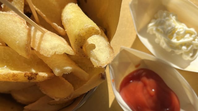 Salsa cheddar / carne di bovina 200 gr. / bacon (aggiunta cipolla