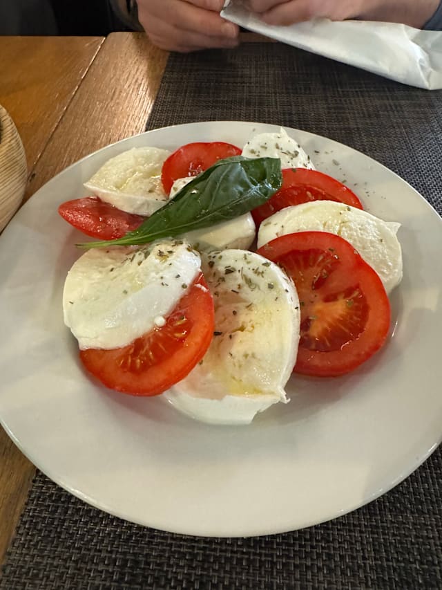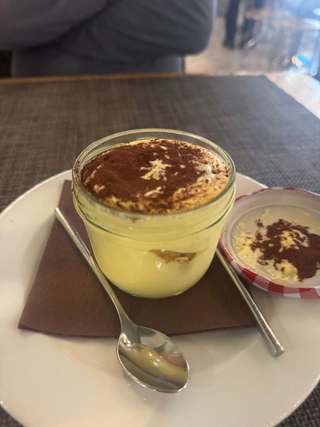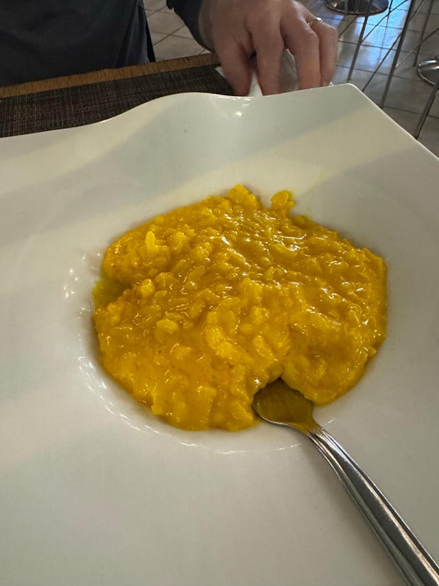 7.5/10Nice bright environment Risotto milanese very tasty (with saffran), ask the seafood version 18E Water bottle 0.75l not even 1l too expensive 4E, should be 2 or 2.50