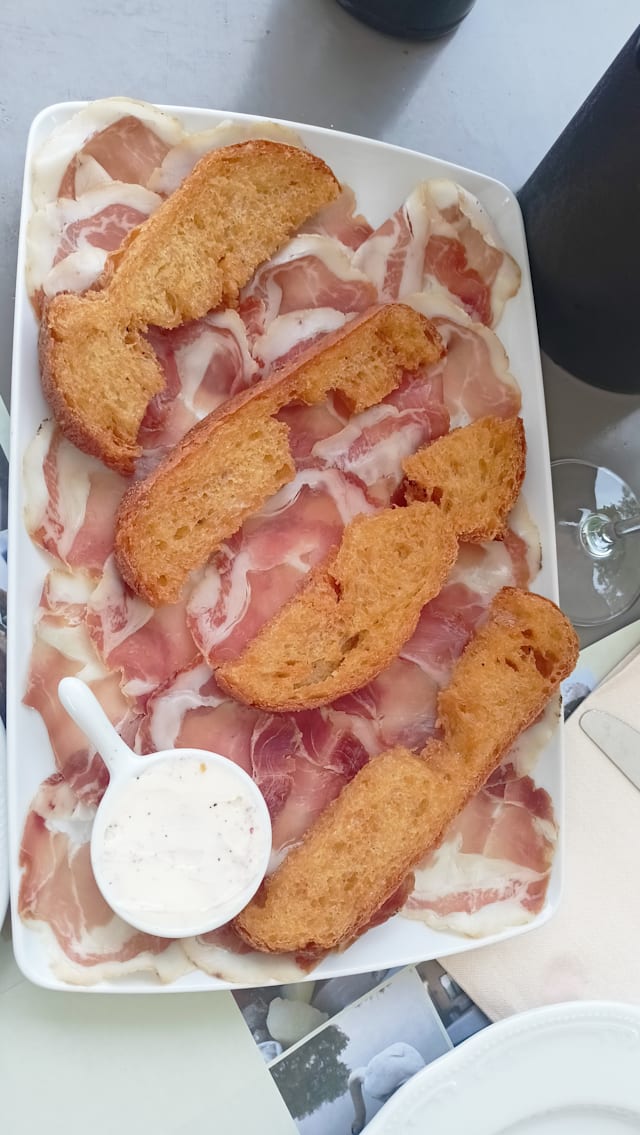 Il carnaroli ai carciofi, gamberi e guanciale di amatrice croccante.