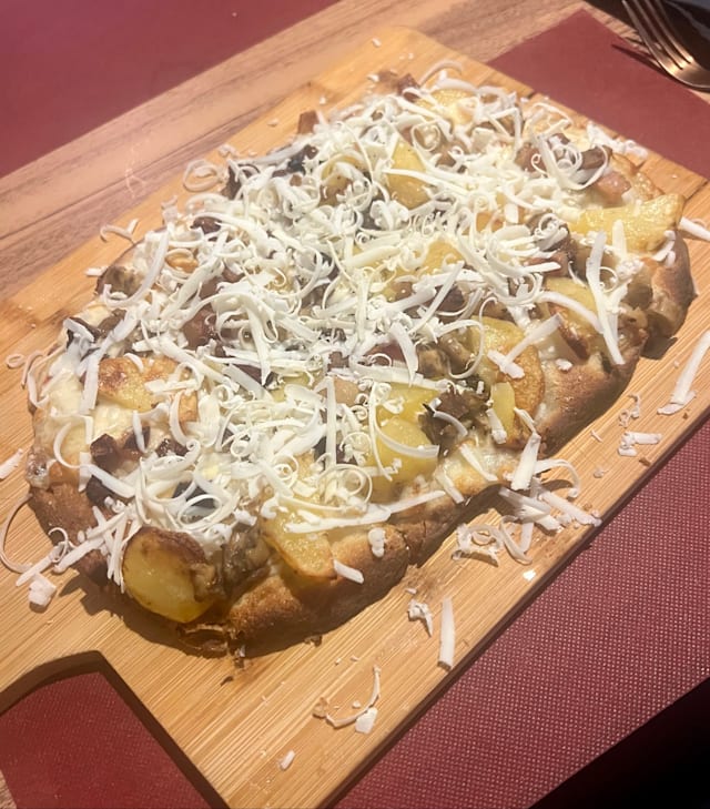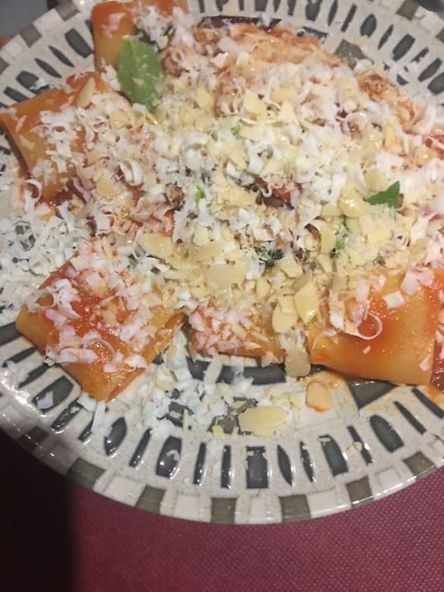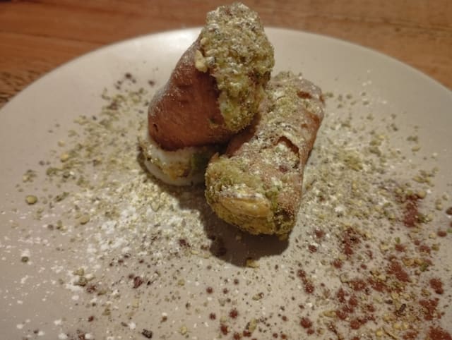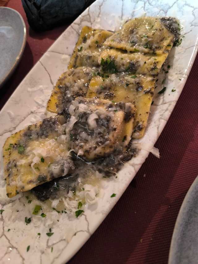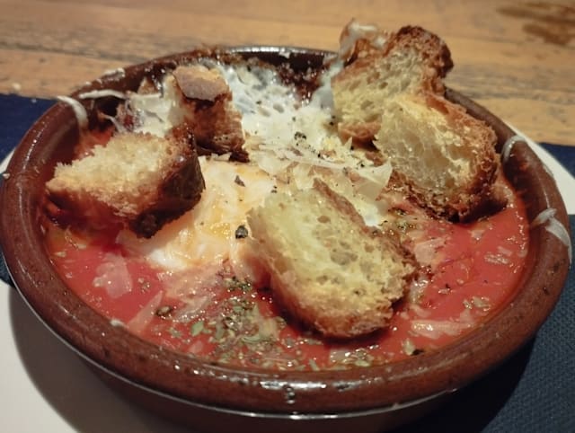 8/10The egg alla Romana(Fried egg with tomato sauce and pecorino cheese) was delicious. The Grilled Ravioli (Milk Braised beef ravioli with Barolo wine, butter, sage and black truffle) were disappointing with a sauce that was very oily. The pinsa Romana Diego(Tomato sauce, mozzarella, cooked ham and mushrooms) was delicious. The service was fine. The atmosphere is great but some tables were noisy.