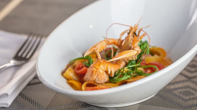 Paccheri con scampi e pomodorino giallo
