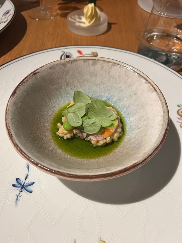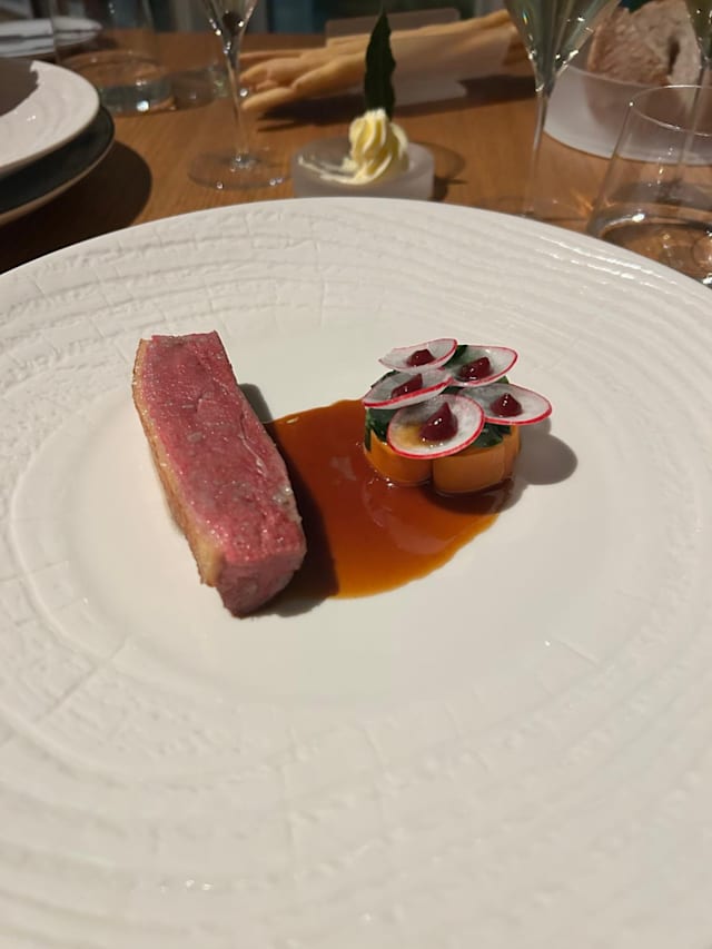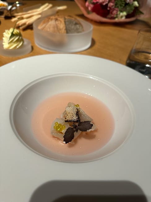 7/10The service is great and most waiters are genuinely friendly, which makes the uptight atmosphere much more comfortable. The food is presented beautifully, however the taste leaves a LOT to be desired, especially given the fact that it's a Michelin star restaurant with a high price tag. Some of the food is intended to be eaten by hand, but no wet towel is provided to clean the hands before the meal, which seems like a basic thing to have especially at a prestige restaurant. We asked for wine glasses, saying that we don't drink much, but were sold a bottle (that could have been a misunderstanding). The 4-course options are more than enough given how heavy some of the dishes are. In short, people who have been to good restaurants around the world are unlikely to find any exceptional dishes here. There are plenty of far superior restaurants in town when it comes to the food, at a fraction of the price.