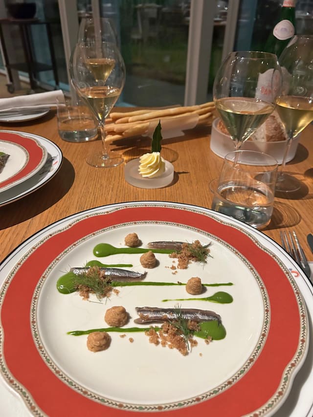 8.5/10A truly magical place high above Turin. We ate 2 different menus and were surprised with a feast for eye and mouth. We asked for a "drivers arrangement" (which in Holland is quite common practice): the complete wine pairing but half glasses of each wine. This was not a known thing for the staff, but after a little talk with te sommelier it was made possible for us. Thank you, we were clear headed on our drive back to the Netherlands the next day, while still being able to taste the menu and pairing in it's entirety as thought out by chef and sommelier.