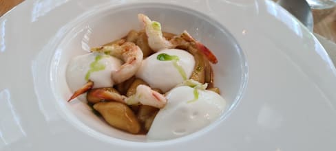 7/10The service is great and most waiters are genuinely friendly, which makes the uptight atmosphere much more comfortable. The food is presented beautifully, however the taste leaves a LOT to be desired, especially given the fact that it's a Michelin star restaurant with a high price tag. Some of the food is intended to be eaten by hand, but no wet towel is provided to clean the hands before the meal, which seems like a basic thing to have especially at a prestige restaurant. We asked for wine glasses, saying that we don't drink much, but were sold a bottle (that could have been a misunderstanding). The 4-course options are more than enough given how heavy some of the dishes are. In short, people who have been to good restaurants around the world are unlikely to find any exceptional dishes here. There are plenty of far superior restaurants in town when it comes to the food, at a fraction of the price.