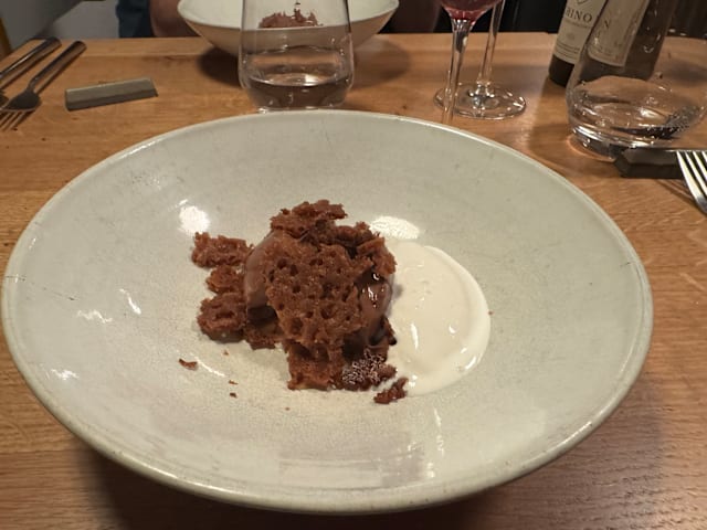 Delightful friendly service with superb cuisine that tantalizes all your taste categories - from tangy to sweet. Each course (5 at dinner for 75 euro menu) brings together distinct flavors that linger, yet can be complemented with wine and Champagne. Perfect for double date night and anniversaries, or just a fine evening!
