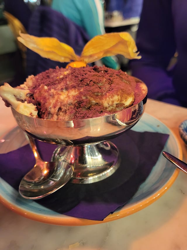 OK food, nice terrace, super tight seats inside, the table next to you is way too close it’s like you all are friends😂 The service were crazy rude, yelling at people, asking if they are finished multiple times. Not worth the price. Tip!! Go somewhere else