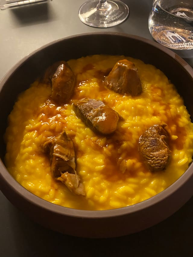 10/10First the room is gorgeous-looking out over the trees. We were there at sunset in the rain and it was exquisitely beautiful surrounded by the sky. The food is incredible. I had the steak and it was perfect. He had the risotto with bone marrow; the house specialty and he loved it. The staff is super friendly and helpful. Easily the most charming dinner in Milan.
