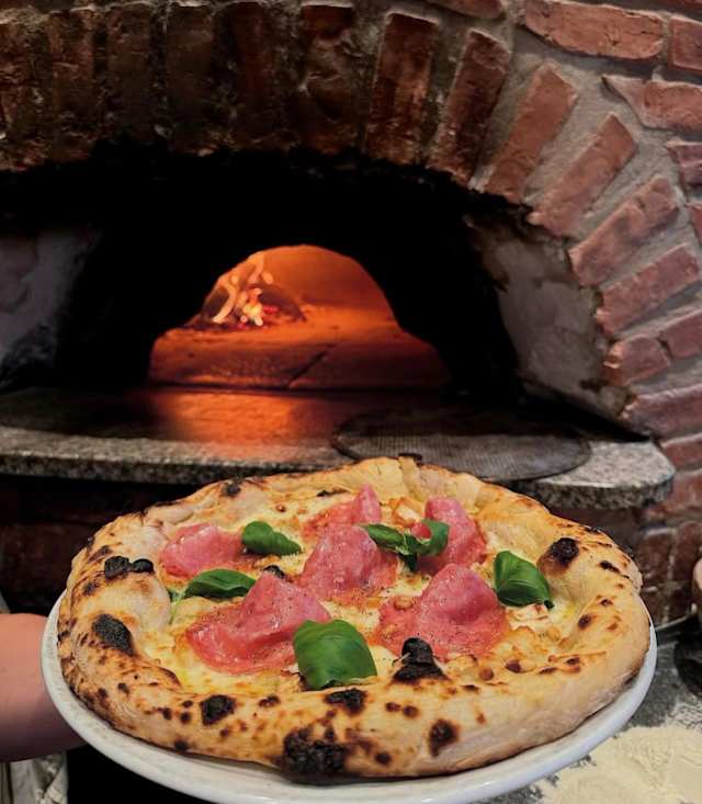 - San marzano tomatsås, fior di latte, prosciutto cotto, basilika, olivolja