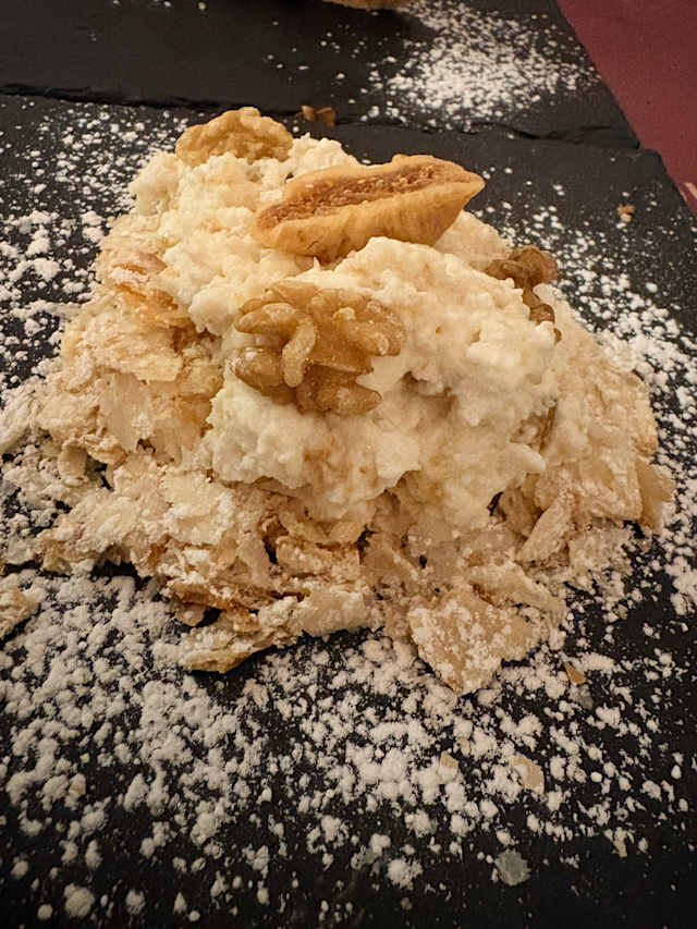 - Tagliere di salumi e formaggi, ricottina con miele, bruschette, mini patatosa, fagiolo amatriciano, ovetto tartufato e verdure grigliate
